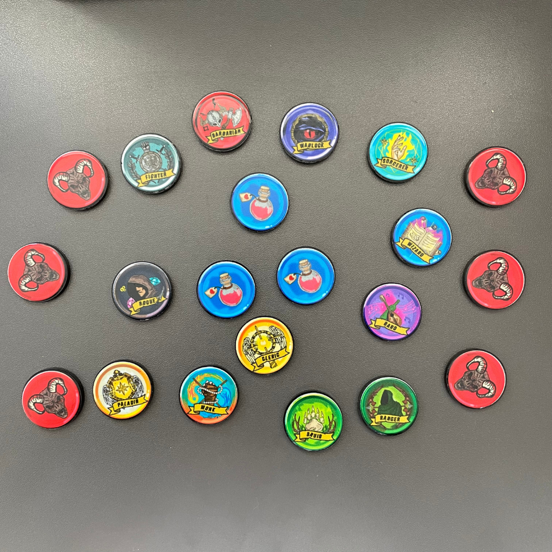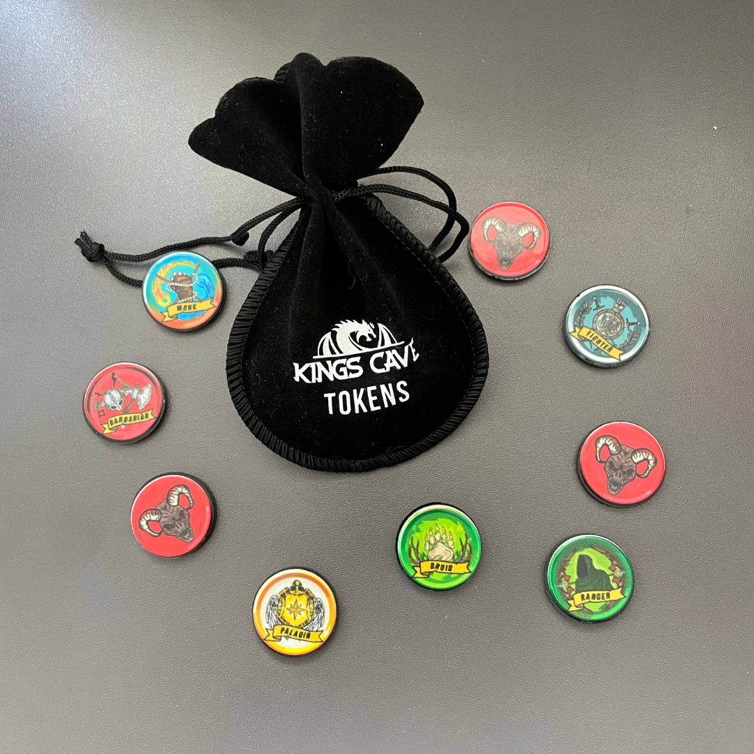 – 12 Tokens de las 12 Clases de personaje clásicas de Dungeons & Dragons (1 de cada una)